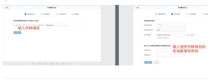 2、驗(yàn)證原郵箱帳號(hào)密碼也需是使用中轉(zhuǎn)域名的別名郵箱